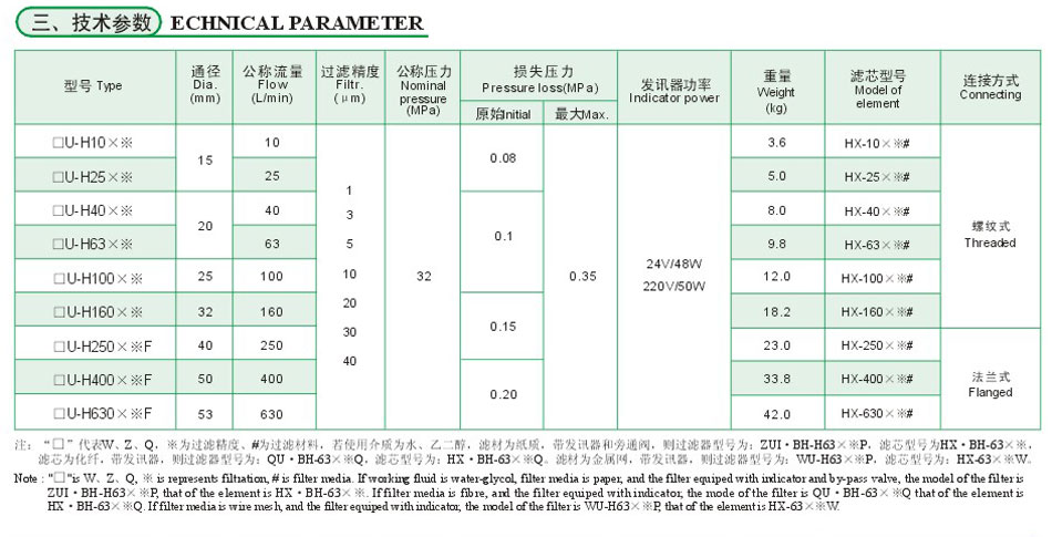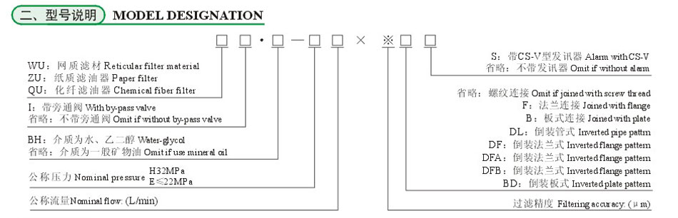 ZU-H壓力管力過(guò)濾器安裝在液壓系統(tǒng)的壓力管路上,用以濾除液壓油中混入的機(jī)械雜質(zhì)和液壓油本身化學(xué)變化所產(chǎn)生的膠質(zhì)、瀝清質(zhì)、炭渣質(zhì)等,從而防止閥芯卡死、節(jié)流小孔縫隙和阻尼孔的堵塞以及液壓元件過(guò)快磨損等故障的發(fā)生